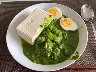 上の写真はサグチキンカレー(ほうれん草とチキンのカレー)本当にレストランの味だ!